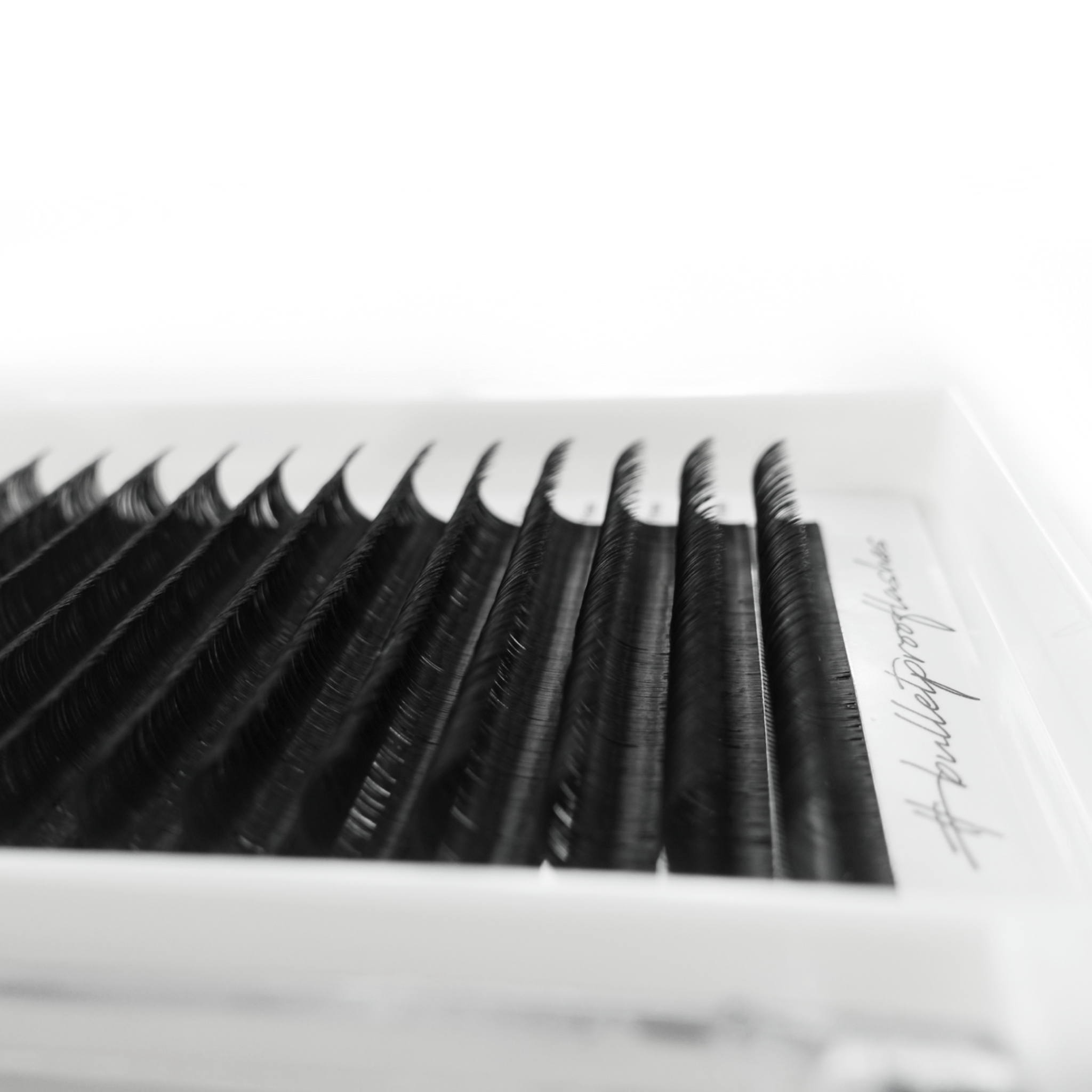 Our Noir Select lashes are made with a super soft velvet like material white maintaining its consistent strong curl. Placed upon a 2mm sticky strip with low to medium sticky surface allowing these trays to be completely versatile for technicians. Noir Select fibre is super easy to manipulate on the lash strip, an ease to pick up creating the most amazing fluffy mega volume fans of your dreams!