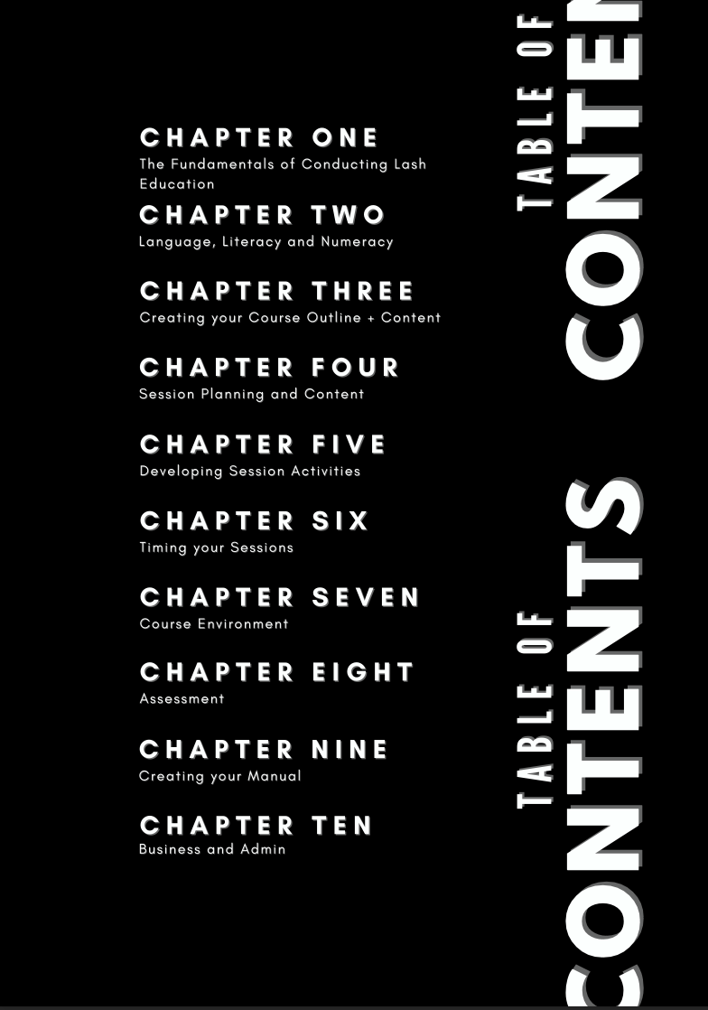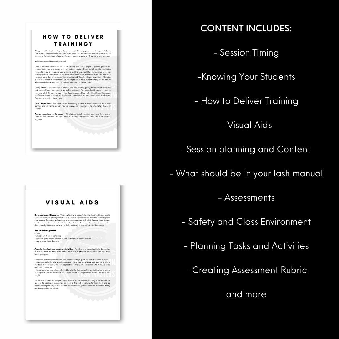 Lash Education is on the rise and with an influx of lash businesses incorporating lash training within their businesses - we have created the ultimate Masterclass Book/Ebook to help you create your own Lash Course.