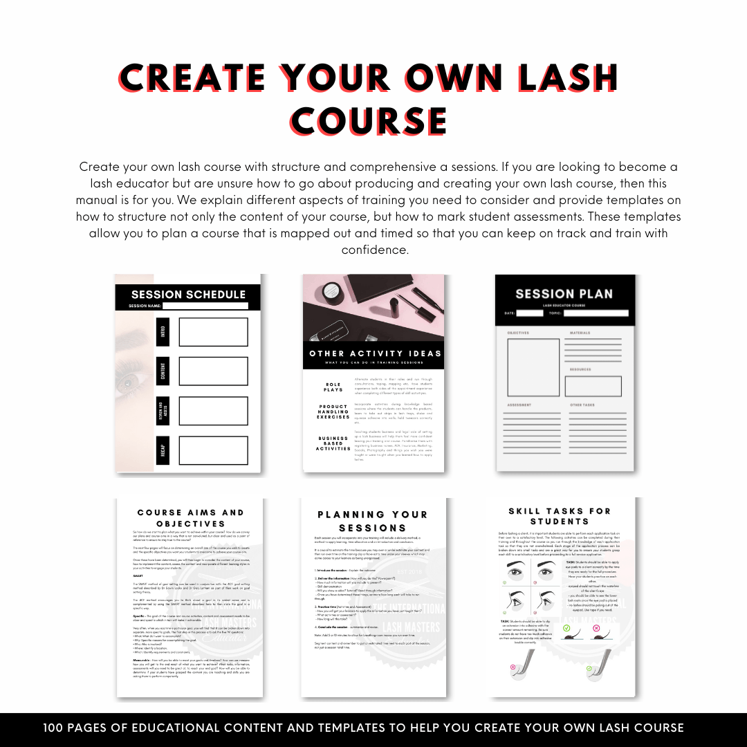 In efforts to reduce the amount of cheap, short, crash lash courses, we created this masterclass manual to help you step through everything you need to know about creating a comprehensive lash course.