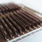 These velvet chocolate brown lashes are here to slay! Featuring a minimal sticky strip allowing for smooth and perfect fanning. Crafted using premium sourced PBT fibre that is soft as silk but holds an ever lasting curl!