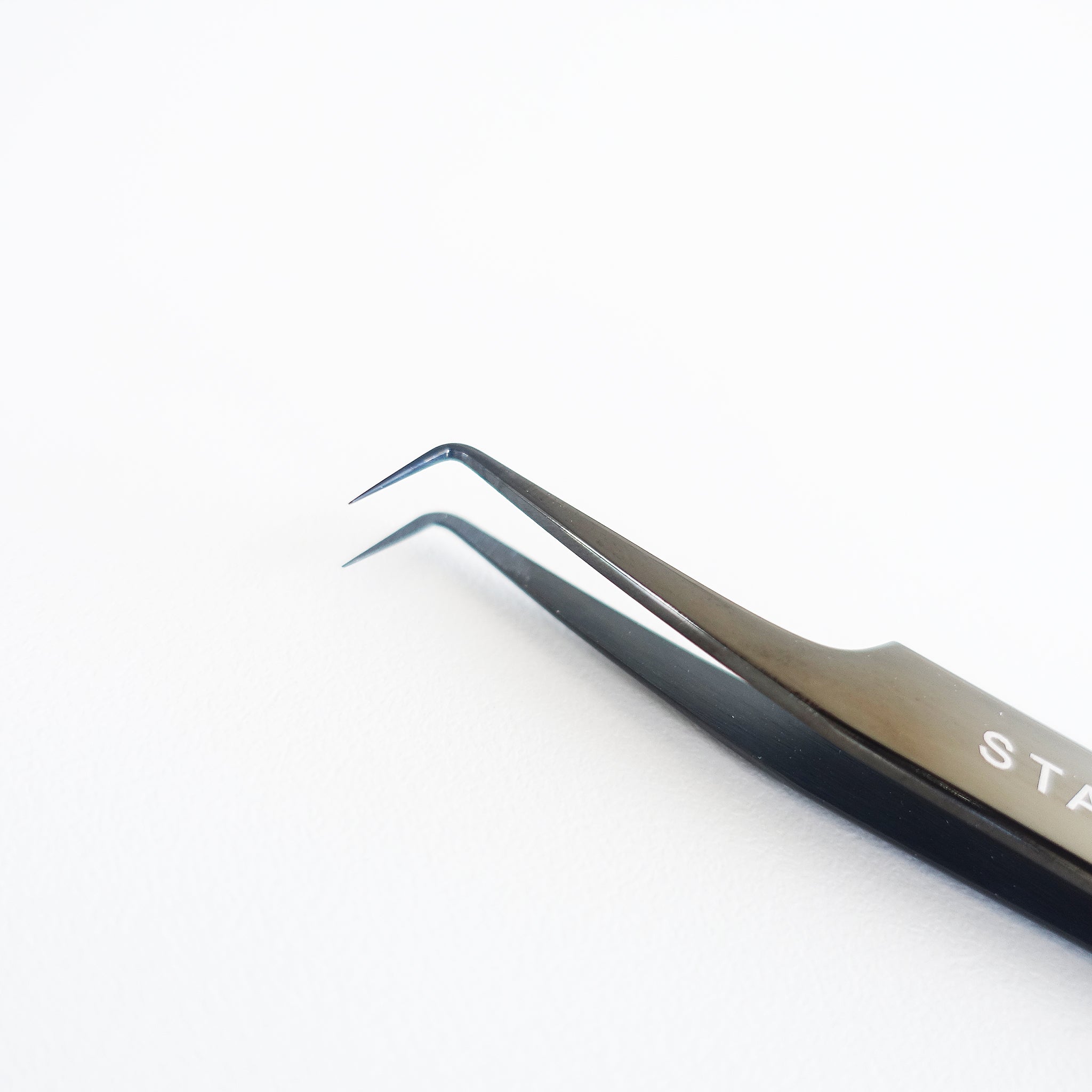 All our tweezers are made with minimal tension to aid in wrist and hand fatigue. Made with the highest grade of Japanese surgical steel and adorned in a shiny black chrome finish.