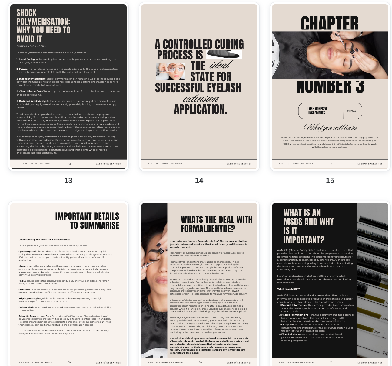 In Our Lash Adhesive Bible, we've compiled a wealth of information in an easy-to-digest format, tailored to your learning needs. Say goodbye to adhesive struggles, and say hello to the confidence that comes from true expertise.