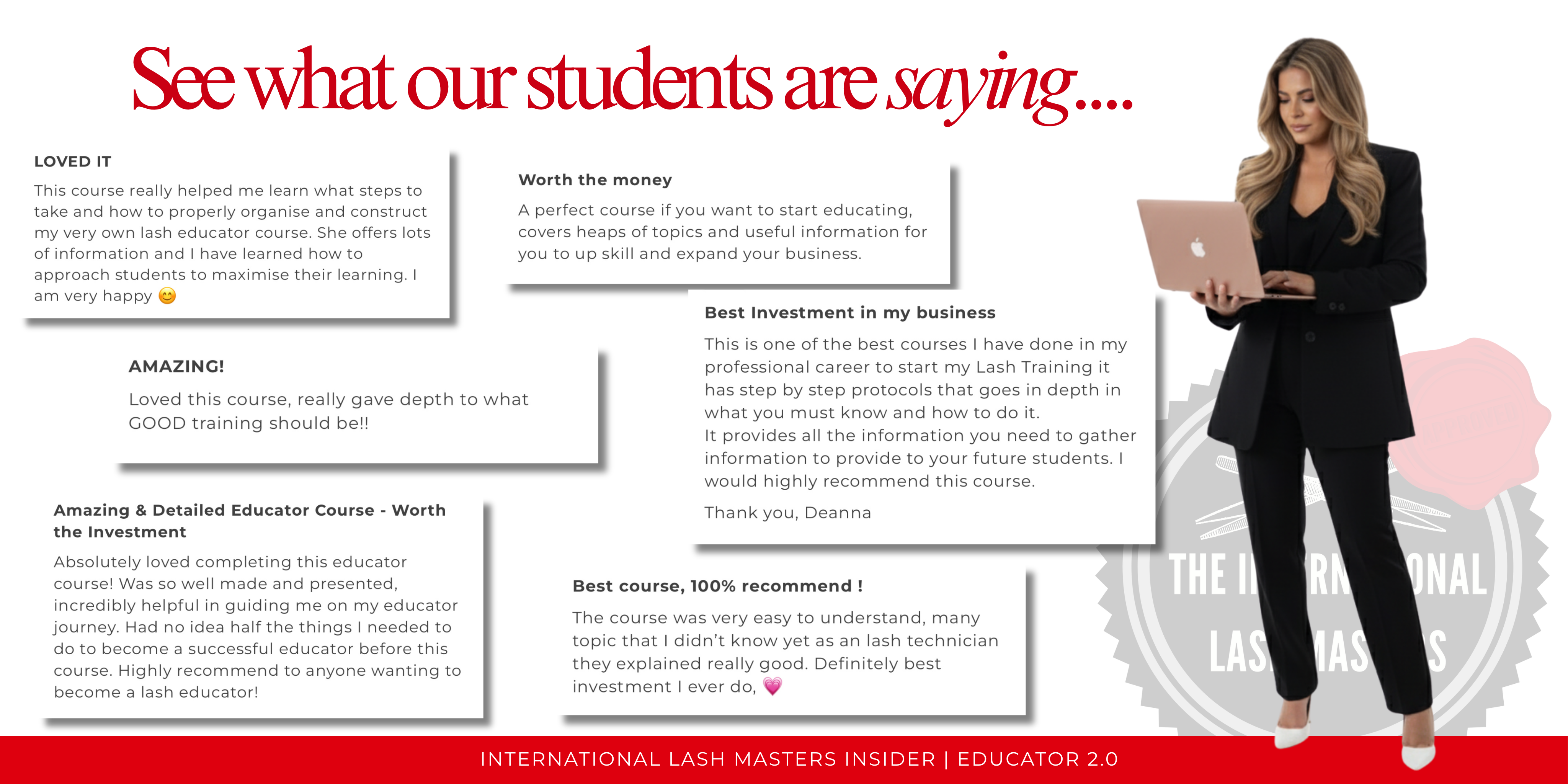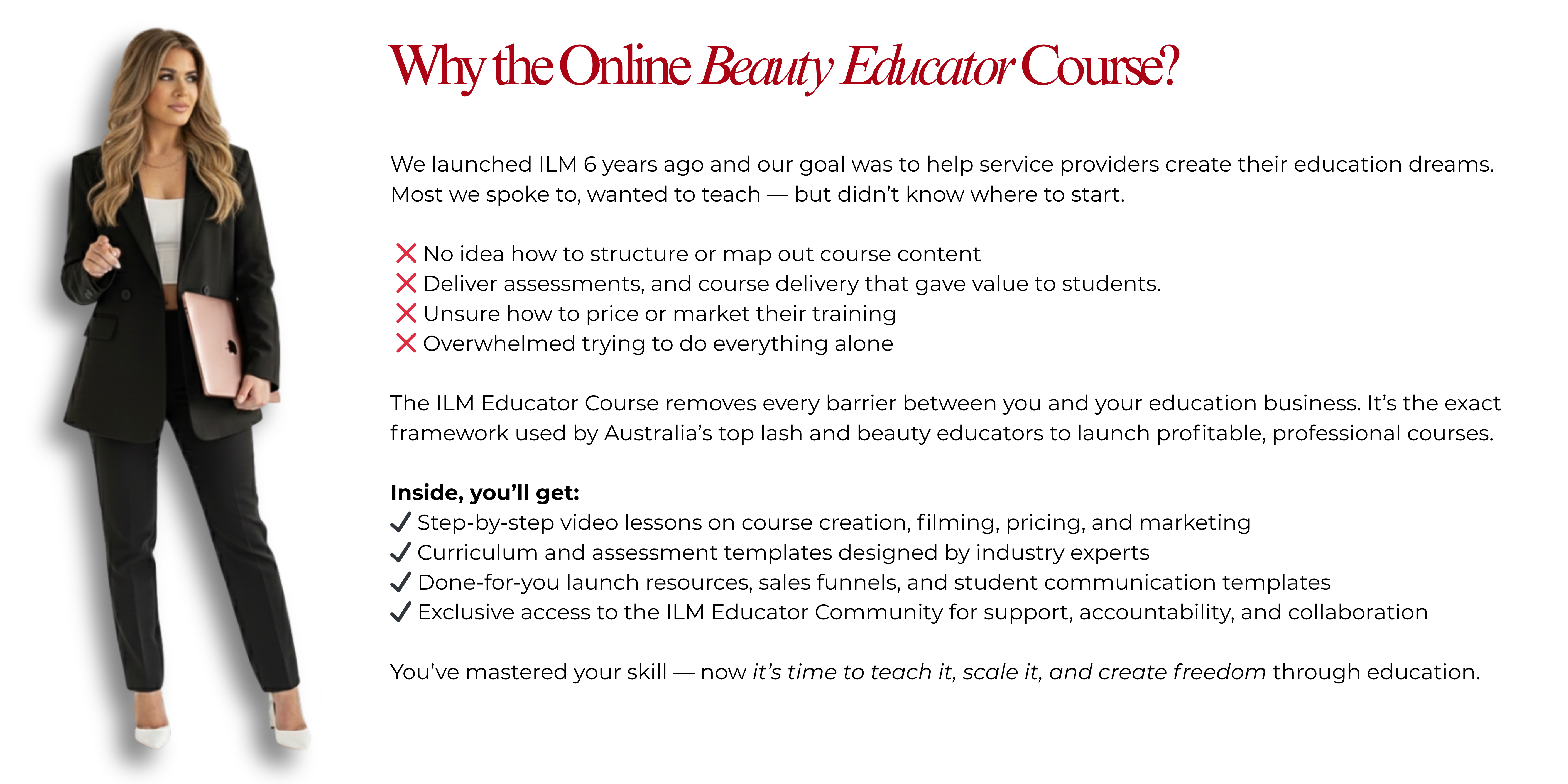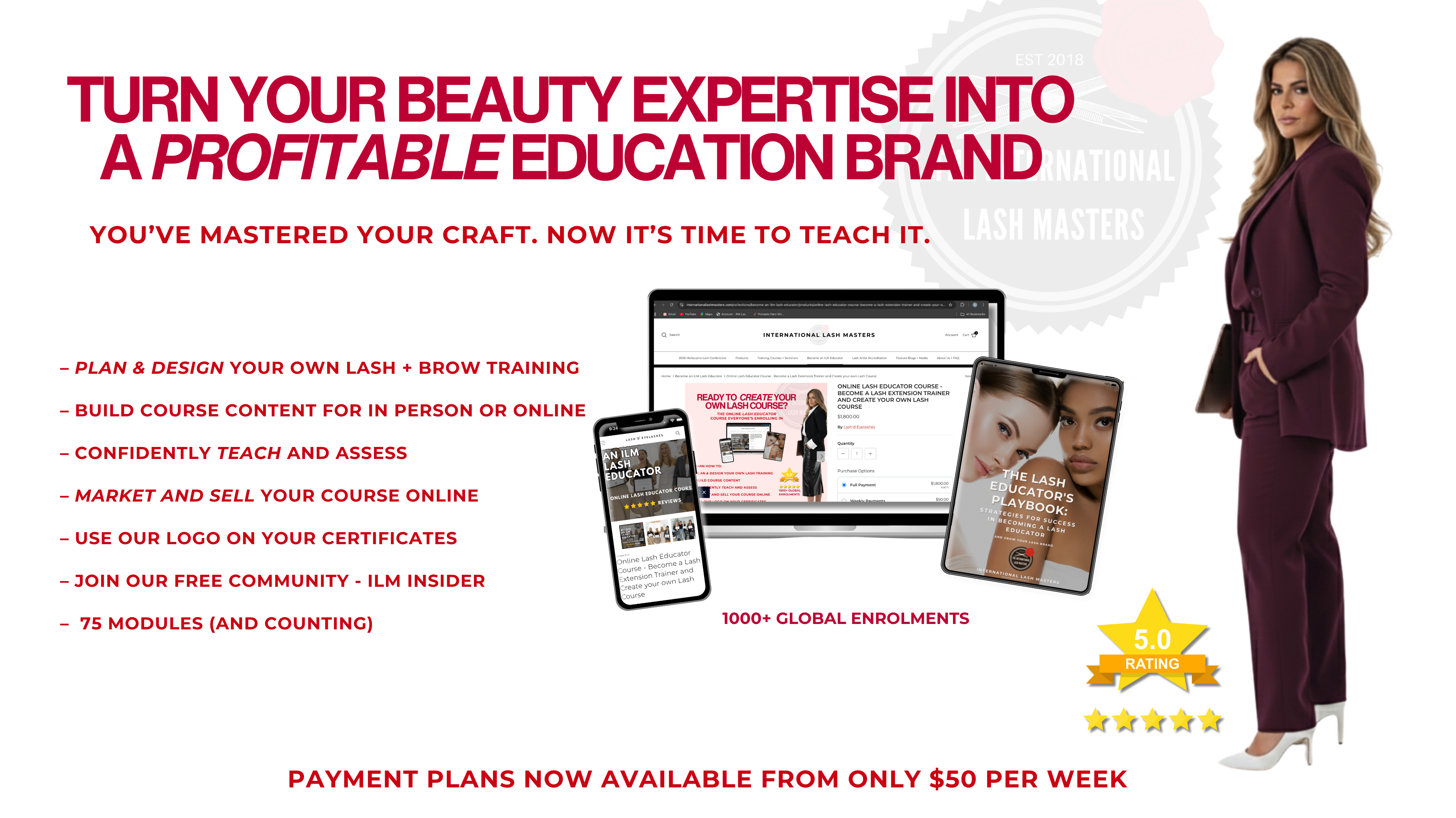Welcome to your transformation into becoming a sought after beauty educator in the lash and brow space. For the last 6 years we have seen over 1000 students from across the globe soar into new heights within their beauty business by expanding into education with ILM