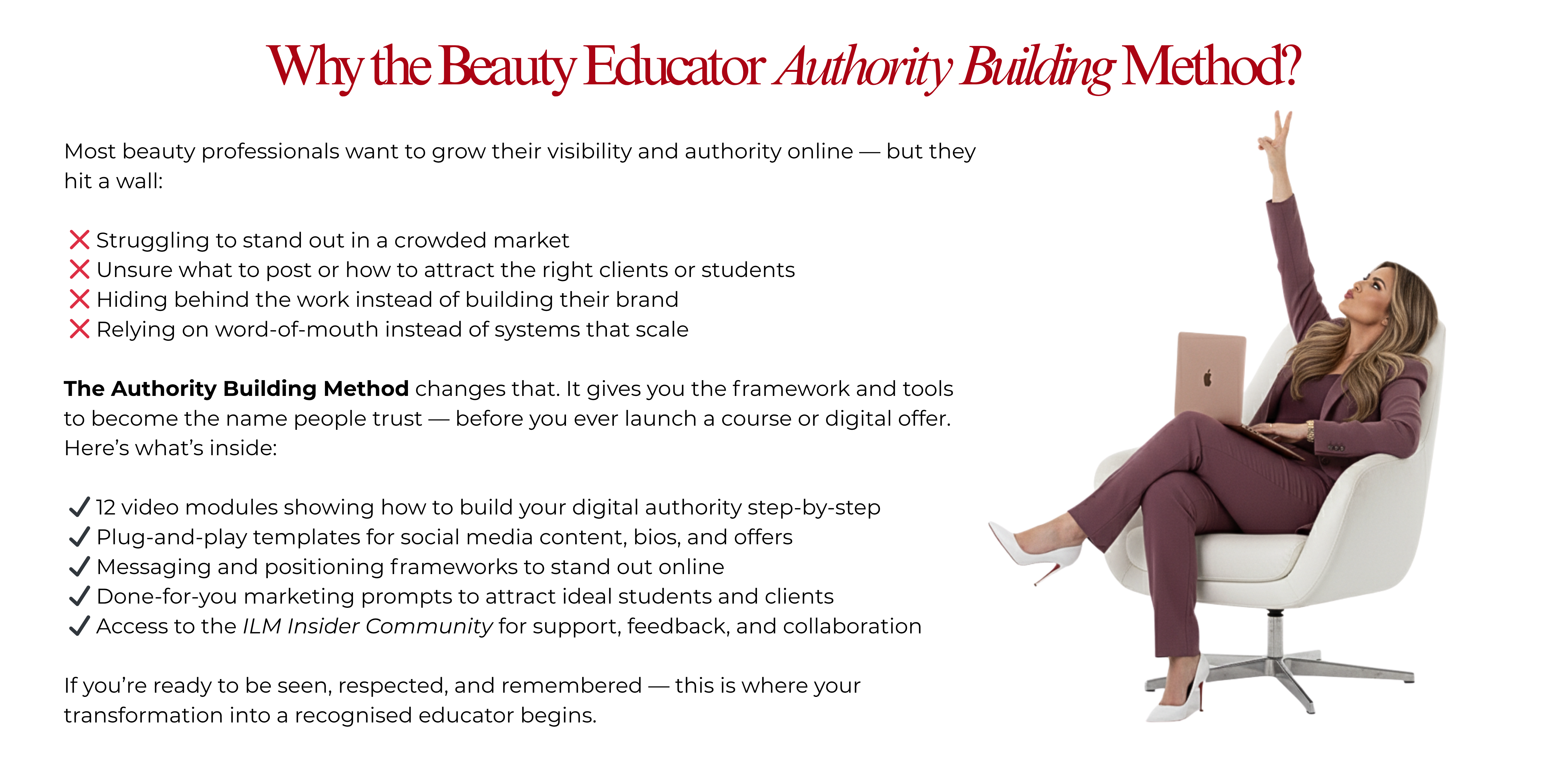 - The Authority Building Method is perfect for lash, brow, and beauty artists who want to create a stronger online presence, attract their ideal audience, and position themselves as an expert in their niche.
